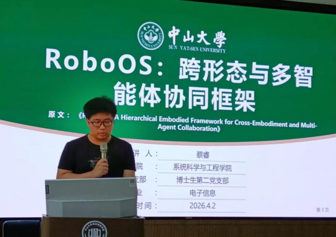 porncams 2024级博士研究生蔡睿作了题为《RoboOS:跨形态与多智能体协同框架》的报告。他系统介绍了RoboOS通过云端大脑进行全局任务分解、边缘小脑实现低延迟执行、共享记忆支撑多机器人状态同步的创新设计,分析了一体化开源方案为异构机器人集群协同部署提供的通用底层能力,并展望了具身智能与多机器人协作在动态环境中的发展潜力。
