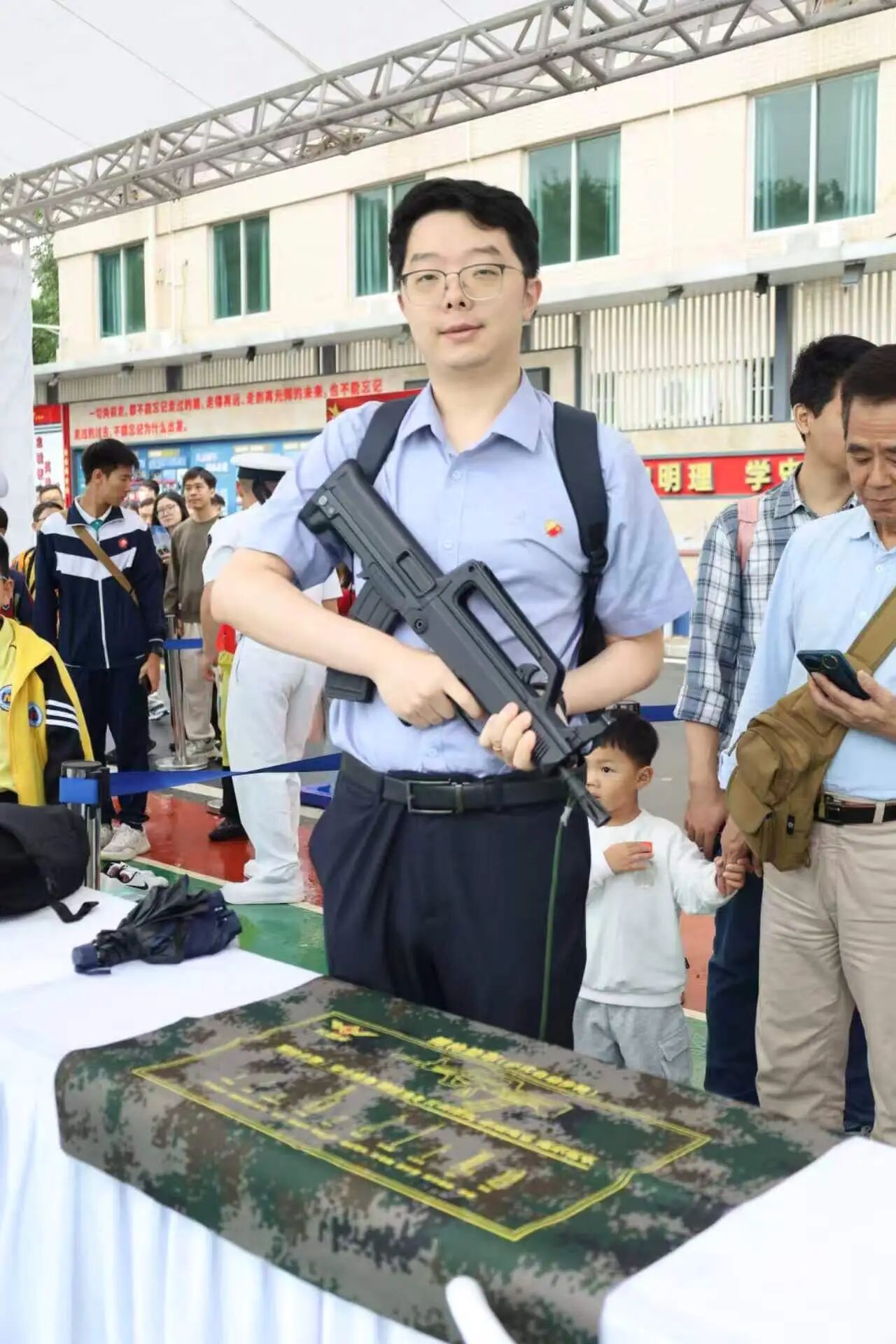 在海军武器装备展示区,党员们驻足观摩轻武器分解结合演示,认真学习绳结技法在舰艇任务中的实战应用,近距离查看防化装备、舰艇模型等展品。在模拟射击体验环节,大家有序参与,规范练习握枪、瞄准、击发等动作,沉浸式体验国产装备的精良性能,直观感受新时代国防科技与武器装备建设的跨越式发展。