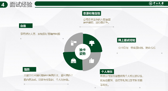 为增强学生职业规划意识,提升学生的职业素养和就业竞争力, porncams 于4月12日晚在389栋414室举行“奔赴热爱,职引未来”活动,研究生刘念、周德种、曾小慧、苏倩、张鹏等五位同学围绕选岗心得、简历润色、笔试准备、面试技巧、职业介绍、求职心路历程等主题进行经验分享,并与同学们互动交流、答疑解惑。活动由学院研究生会承办,学院党委副书记袁婷老师、团委书记郑嘉茵老师出席分享会。