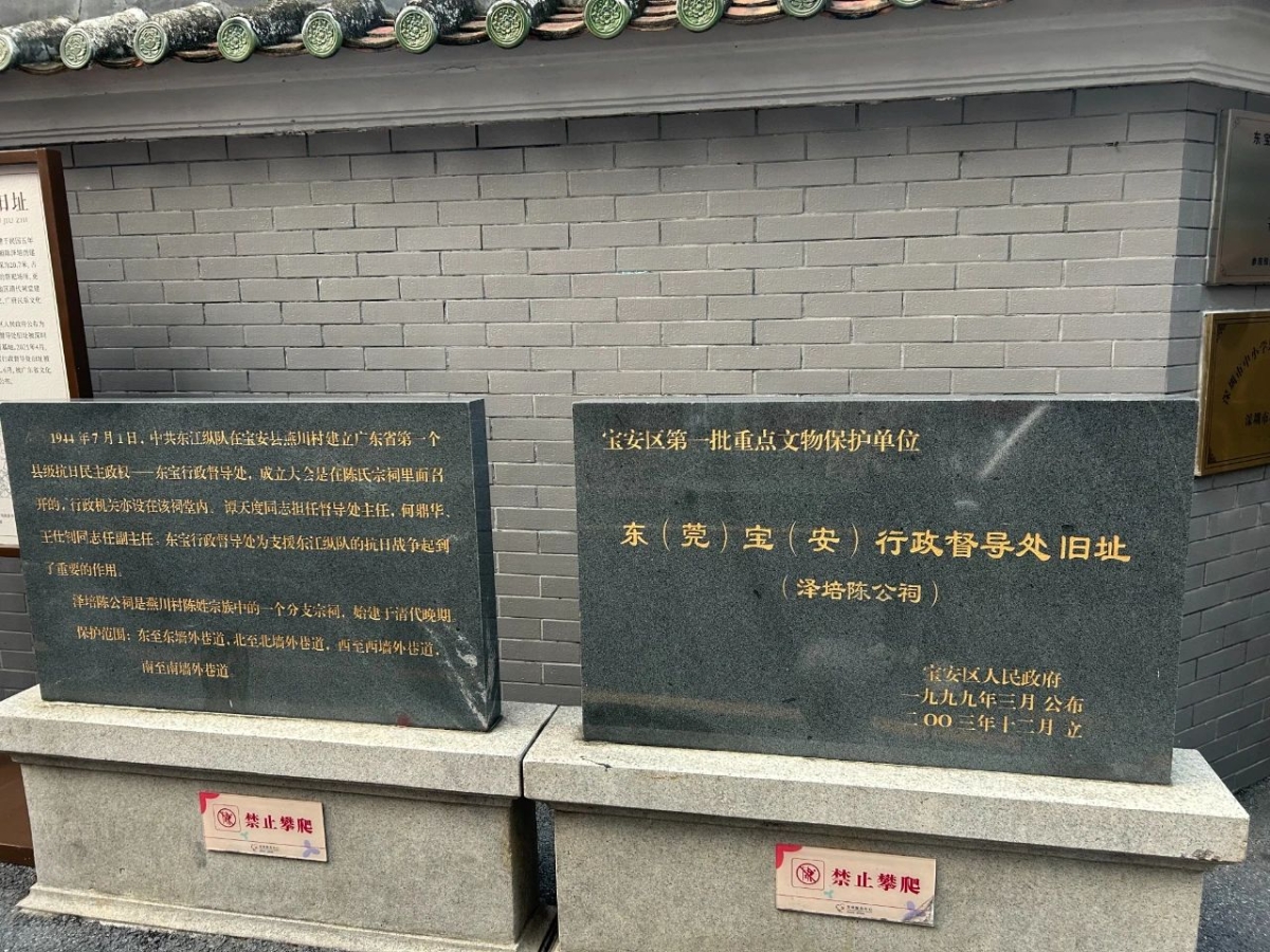 东宝行政督导处旧址现已成为宝安抗日纪念馆,现保留有督导处主任谭天度等人办公及住处,馆内展示有缴获的日军头盔、东江纵队使用过的枪支武器等140多件抗日时期的历史照片和文物。党员们通过纪念馆内的展览了解了东宝行政督导处曾为抗日斗争、支援部队、发展生产、开展文化教育等所做的贡献,感受到先辈们不屈不挠的斗争精神与深厚的爱国情怀。