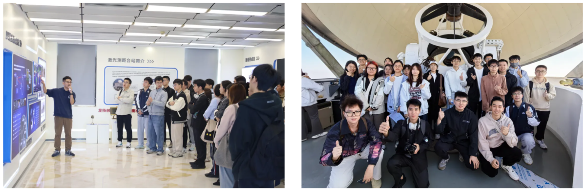 活动在清晨的阳光中拉开序幕。在天琴中心范文扬老师的带领下,师生一行首站来到天琴计划激光测距台站,深入了解了天琴计划的前沿科研成果,感受科学研究的巨大魅力和潜力。天文台的壮丽景观和专业的科研氛围让同学们在参观中领略到了探索宇宙奥秘的力量。