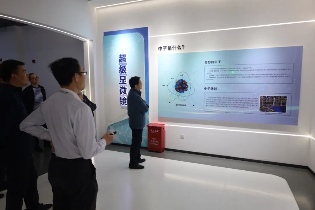 高能物理研究所赵崇光工程师为全体参观成员讲解了中国散裂中子源从项目立项到建设完成的全过程,介绍了这一重大科学基础设施背后蕴含的艰辛努力与卓越成果。作为全球第四台、发展中国家首台脉冲中子源装置,中国散裂中子源不仅填补了国内相关领域的空白,还为我国在中子散射研究、材料科学研究等领域跻身国际先进行列提供了有力支撑,肩负着推动中国基础科学研究和技术创新的重任。其高效能、低成本的运行模式,为我国科技自主创新开辟了新的道路,彰显了党和国家对科技创新的高度重视与持续投入。