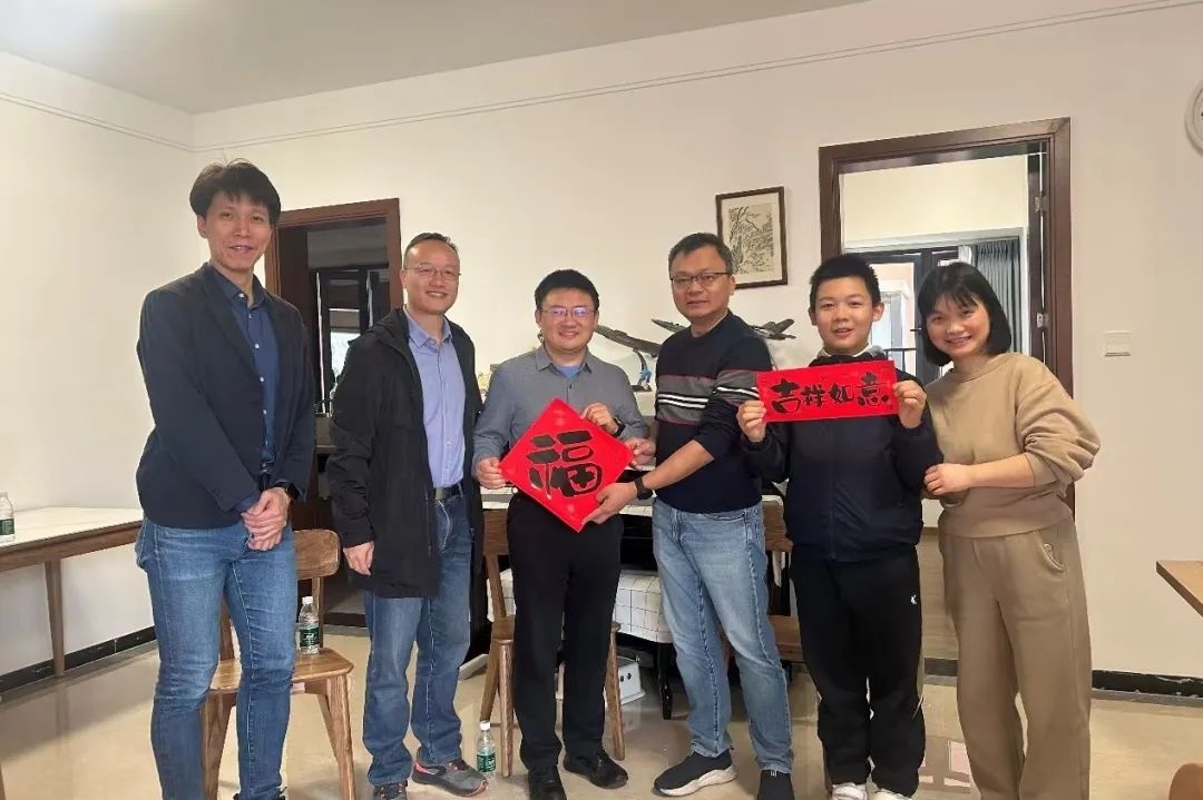 在新年的喜庆氛围中,1月22日下午,学院党委书记黄勇平、工会主席张涛教授、党政办公室关文彦一行前往怡乐路教师公寓,为新入职并乔迁入住的伍蔡伦教授送上新春的问候与祝福。他们将寓意吉祥的新春对联和“福”字亲手交到伍蔡伦教授手中,祝愿他在新的一年里福气满满,科研与教学工作顺遂如意。