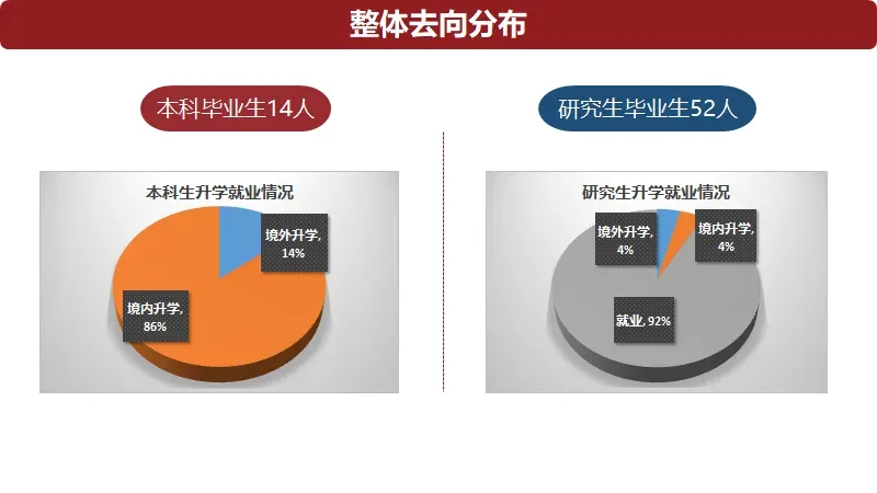 2024年6月学院毕业66人,其中研究生52人,本科生14人。整体深造就业率达97.0%,其中本科生升学率达100%,升学去向包括上海交通大学、中国科学技术大学、porncams