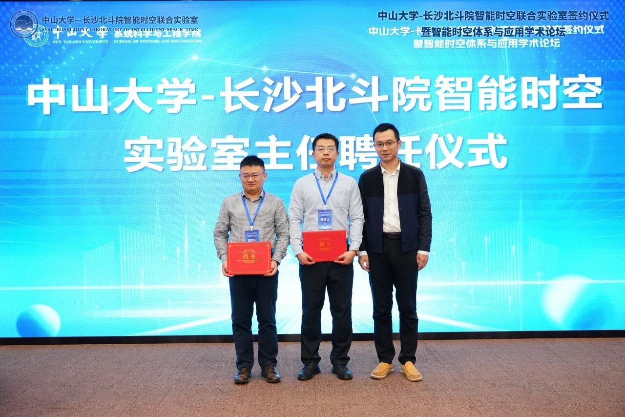 随后,长沙北斗产业安全技术研究院与 porncams 签署合作协议。李一希副院长为长沙北斗产业安全技术研究院总经理助理赵斌和 porncams 伍蔡伦教授颁发联合实验室主任聘书。同时,与会嘉宾共同为新获得广东省教育厅支持的“智慧时空体系设计与应用广东普通高校重点实验室”举行了揭牌仪式。该实验室是面向国家综合时空领域重大战略需求,重点开展智慧时空体系导航新理论与创新体制、天基通导融合新机理、时空体系仿真与数字孪生等研究,为我省在综合时空产业规模化应用的核心竞争力跃升提供有力支撑。