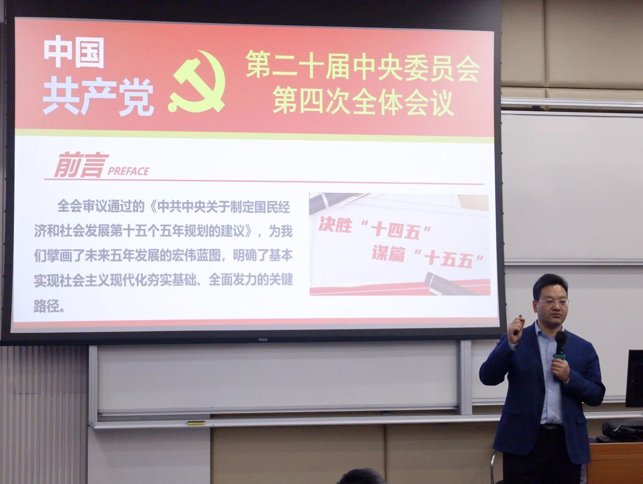 张浩教授以《深悟党的二十届四中全会精神实质,扛起“十五五”奋进新使命》为主题展开讲授。他指出,党的二十届四中全会是在“十四五”规划即将收官、“十五五”规划即将启动的关键时期召开的一次具有深远战略意义的重要会议。全会系统谋划了未来五年的发展蓝图,特别是在应对国际复杂局势、推动经济高质量发展和加快科技创新等领域,提出了明确的战略方向。
