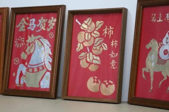 活动现场气氛热烈非凡,师生们小心翼翼地将金箔贴附于红色底板之上,勾勒出一匹匹形态各异、栩栩如生的骏马形象。今年恰逢丙午马年,大家纷纷选择以“金马贺岁”为主题进行创作,寓意马到成功、前程似锦。在创作过程中,师生们不仅沉浸于手作的乐趣,更深刻领略到了金箔艺术与传统文化的独特魅力。一片片金箔在指尖化为灵动的骏马、绚烂的烟花,为新年增添了别样的仪式感,传递着对新年的美好祝愿。