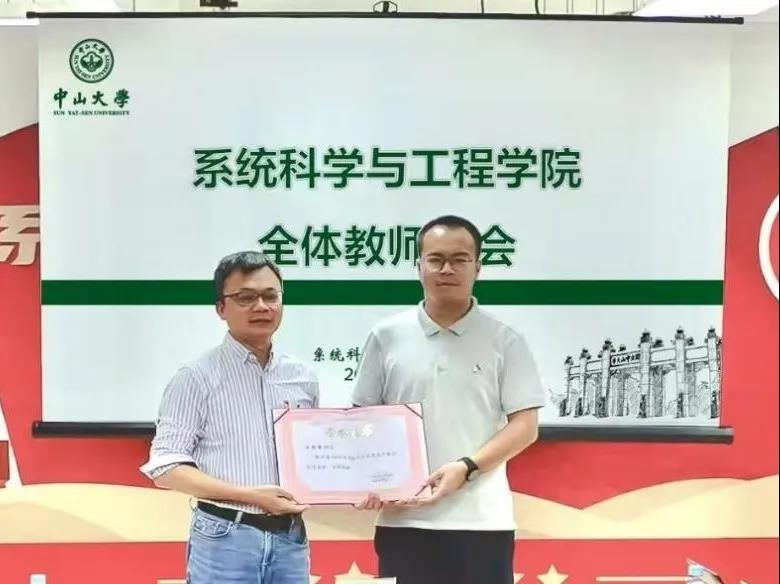 图2 黄勇平书记为王劲博助理教授颁发优秀共产党员证书