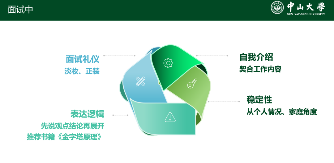 信息与通信工程专业2021级硕士苏倩同学详细介绍有关国企的应聘准备及面试经验。她建议面试时应当深入理解所应聘岗位的特性和要求,注重个人形象,谈吐大方得体。她推荐大家可以阅读书籍《金字塔原理》,着重指出面试过程中表达逻辑的重要性,指出应先说结论再详细展开后续描述。