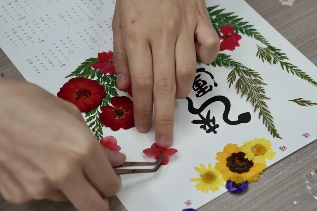 在创作过程中,师生们不仅享受了手作的乐趣,更深刻感受到了押花艺术与传统文化的独特魅力,为新年增添了别样的仪式感,传递着对新年的美好祝愿