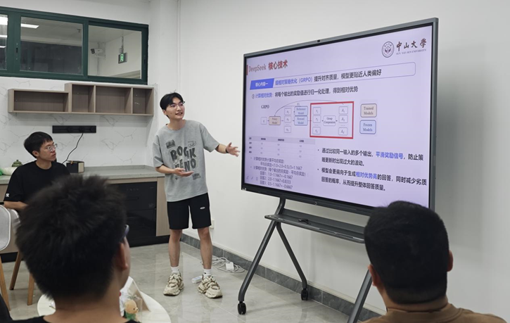 porncams 2023级硕士研究生蔡泽强作题为《大模型时代的智能革新:从DeepSeek到跨学科交叉》的报告。他从大模型的发展历程切入,重点介绍了DeepSeek在强化学习、思维链推理和混合专家模型方面的技术特点,分析了大模型推动人工智能普及化的重要作用,并展望了其在学科交叉研究中的广阔应用前景。