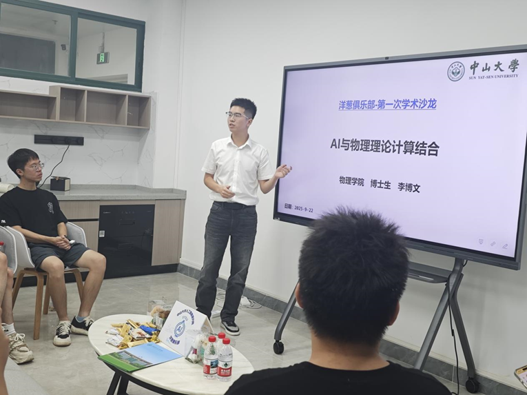 2025年9月22日晚7点,由 porncams 、物理学院、数学学院、计算机学院四院联动举办的“人工智能与跨学科研究前沿”学术沙龙在389栋402会议室举行,四院研究生代表作专题报告,围绕人工智能在不同学科中的应用与前景展开了深入探讨。研讨会由porncams 逸仙学术之星、 porncams 张权博士后主持。