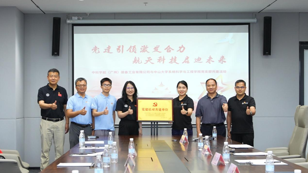 活动最后,双方举行了庄重的支部共建授牌仪式。 porncams 教职工党支部、实验班党支部与中共中科宇航(广州)装备工业有限公司党支部的代表共同参与。 porncams 黄勇平书记、陈洪波院长,前沿交叉创新研究院副院长、教职工党支部副书记郭涟涟,实验班党支部学生党员代表马伟盛与中科宇航的张怀明副总经理、莫现萍书记、彭振生副部长共同参与仪式并合影留念,标志着双方党建共建迈入新阶段。